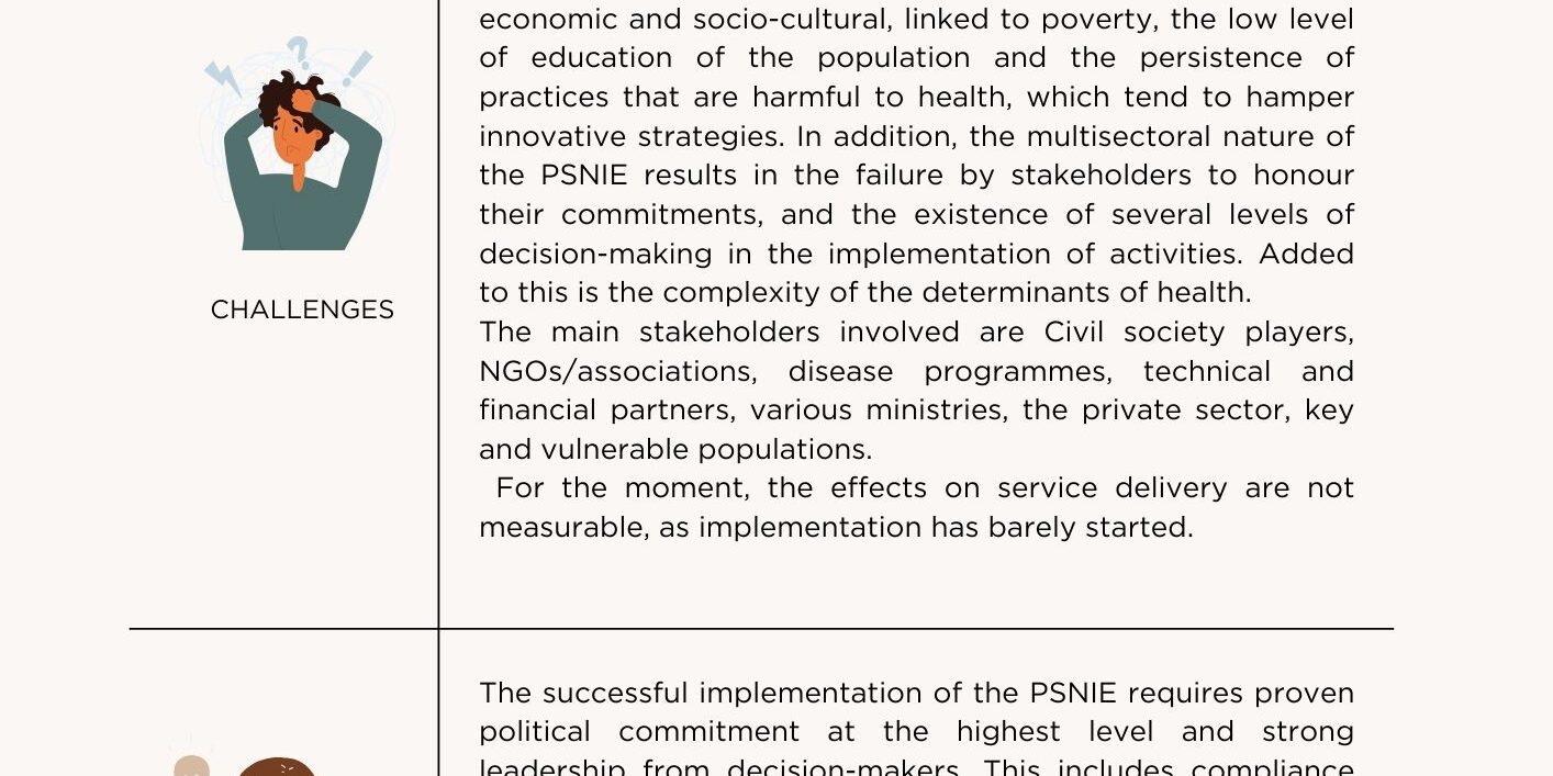 This initiative in Benin focuses on the active involvement of a wide range of stakeholders, including civil society players, NGOs/associations, disease programs, technical and financial partners, various ministries, the private sector, and key/vulnerable populations. The goal is to develop the 2024-2030 Integrated National Strategic Plan to combat HIV/AIDS, tuberculosis, malaria, viral hepatitis, and other epidemic-prone diseases. However, economic and socio-cultural constraints, lack of education, and health-harming practices hinder progress. To overcome these obstacles, strong political commitment, leadership, collaboration across sectors, and optimized governance are essential. The methodology involves national health conferences, stakeholder needs assessment, and implementation of recommendations. Lessons learned emphasize the importance of stakeholder involvement in developing innovative interventions and strengthening healthcare systems. Recommendations include engaging all interested parties in the fight against diseases for a more effective response strategy.